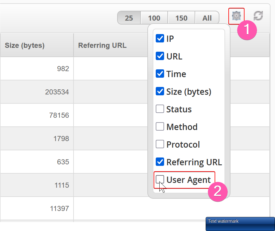 اگر ستون user agent را نمی بینید با کلیک روی دکمه بالای صفحه میتوانید انرا فعال کنید: