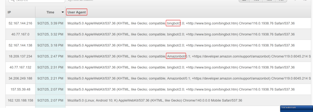 در سی پنل در بخش Visitors یا بخش Raw Access میتوانید لیست درخواست هایی که برای سایت ارسال میشوند را ببینید و User Agent درخواست ها را مشاهده کنید.